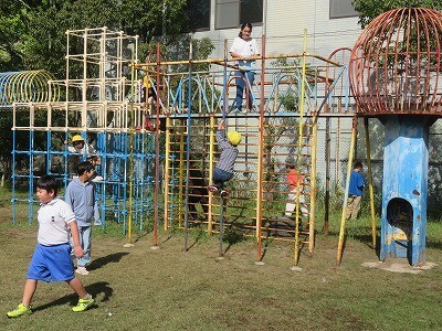 ボール遊びはできませんでしたが、たくさんの子どもたちが体を動かしています。
