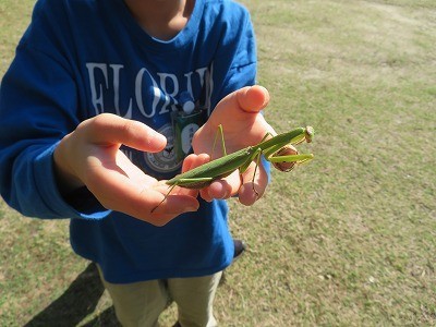 カマキリとカマキリのタマゴを見つけた藤江っ子が見せに来てくれました。