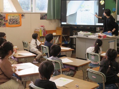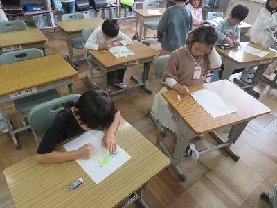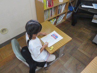 1年生の国語「じどうしゃずかんをつくろう」の様子です。