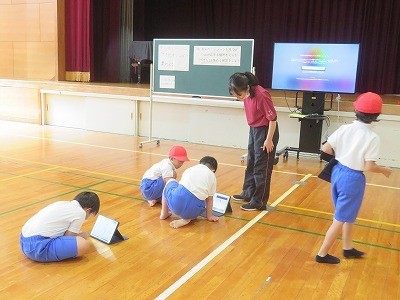 タブレットでお手本動画を見たり、壁に貼られているポイントを読んだりしながら、自分の課題に取り組んでいました。