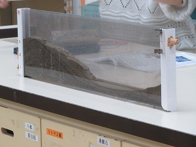地層は「れき」「砂」「泥」の3つの層からでできていることを学習しました。