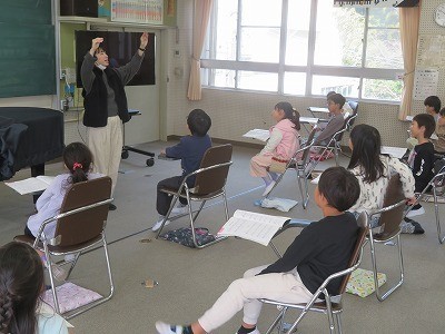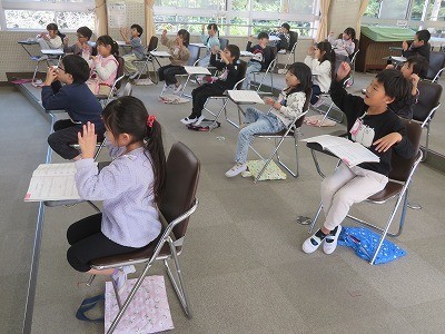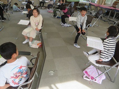 先に歌うグループと後で歌うグループに分かれて、「アイアイ」を歌いました。