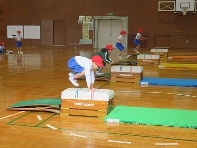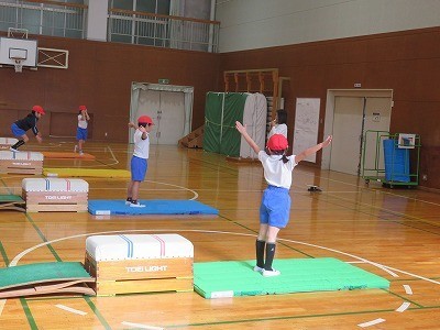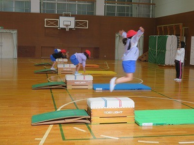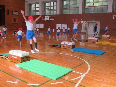 両足踏切や片足踏切の練習や両足着地の練習をしました。