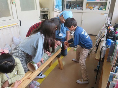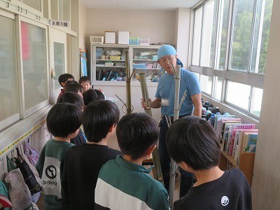 今日は地域の方が竹を使った輪投げづくりのお手伝いに来てくださいました。