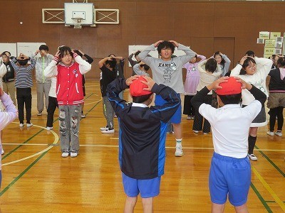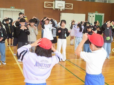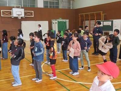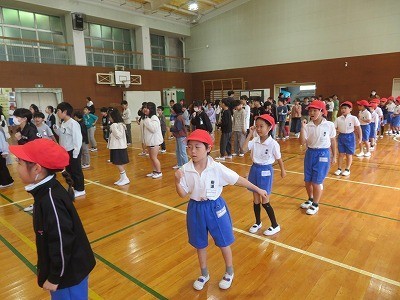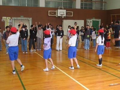 4年生から2年生のペアにアドバイスをした後、みんなで踊りました。