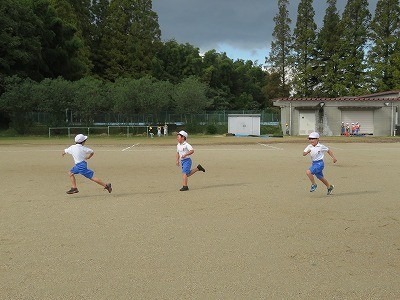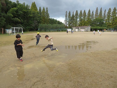 水たまりを跳び越えて遊んでいる子どもたちもいました。