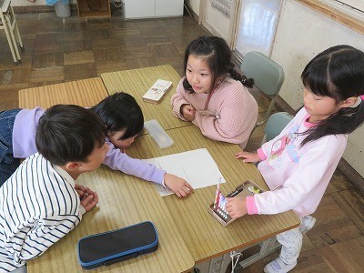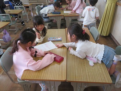 1年生が生活科で藤江っ子まつりの準備をしています。