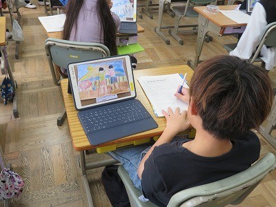 3年生の図工「あの日あの時の気持ち」の様子です。