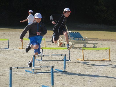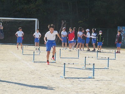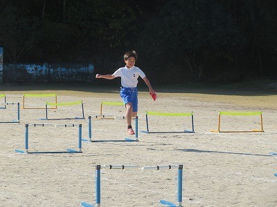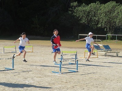 6年生が体育でハードル走に取り組んでいました。