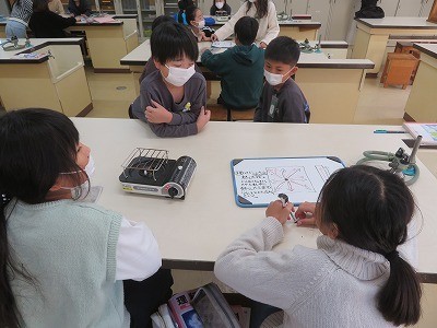 4年生の理科「もののあたたまり方」の様子です。