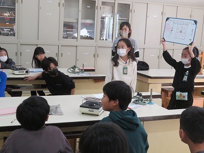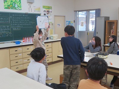 実験結果を班ごとにまとめ発表しています。