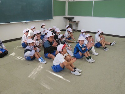 体育館がエアコン工事で使えないため、多目的室で行いました。