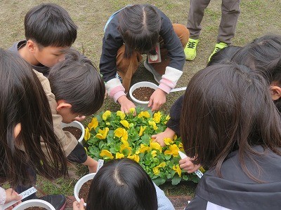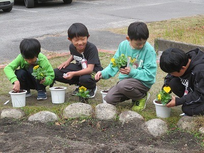 卒業式、入学式に会場を飾るためにパンジーを育てます。