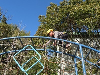 朝は雪が降りそうな空でしたが、昼放課には青空が広がりました。