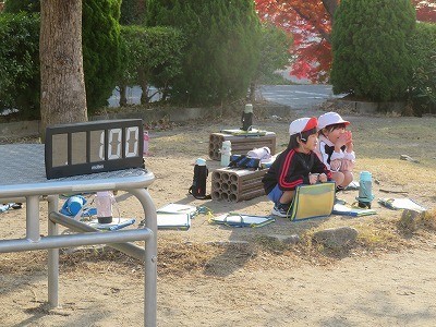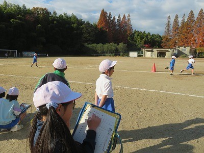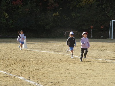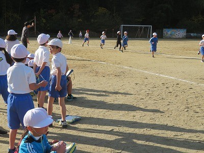 「がんばれ~!」と友だちの応援を聞きながら、頑張って走っています。