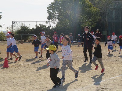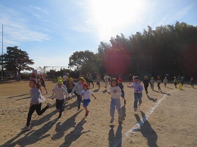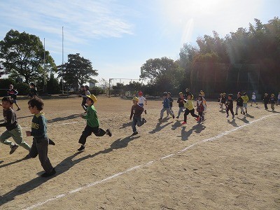 今日ののびのびタイムは全校マラソンを行いました。