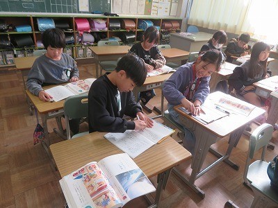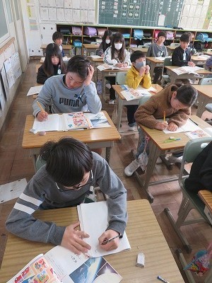 教科書に書かれている漢字を使って、挿絵に合った短文作りをしました。