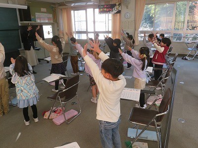 「となりのトトロ」の「さんぽ」に合う振り付けをみんなで考えました。