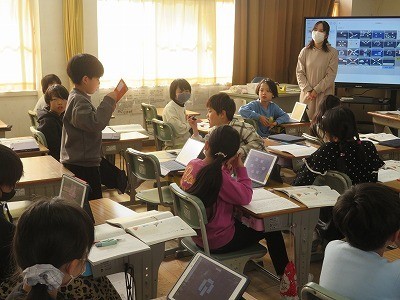 これらの言葉を使って、3文からなる作文を書いて、発表しました。