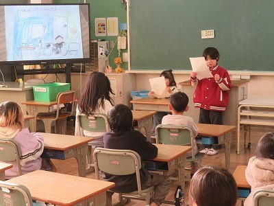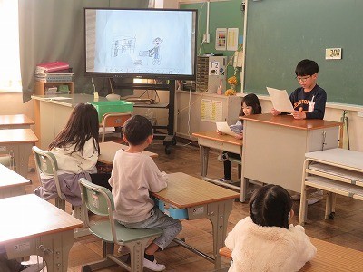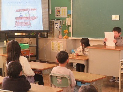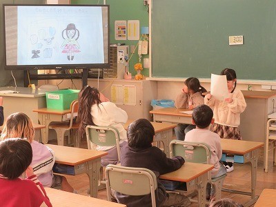 1年生が生活科で「お手伝い」の発表会を行っていました。