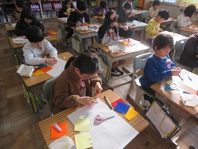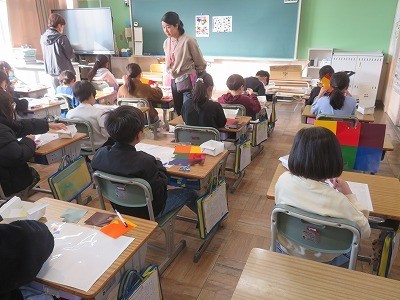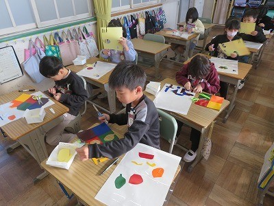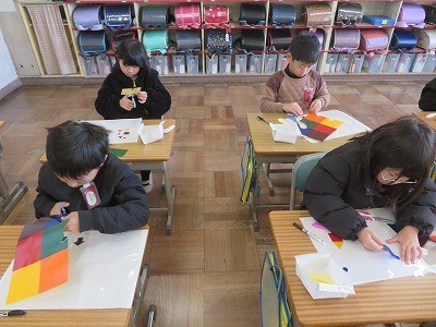 光を通す材料を組み合わせて、色の変化を工夫しながら、作品作りをしていきます。