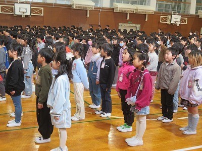 2025年最後の校歌斉唱・・・1年の締めくくりにふさわしい元気な歌声が体育館に響きました。