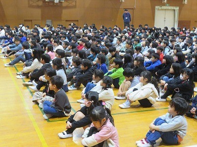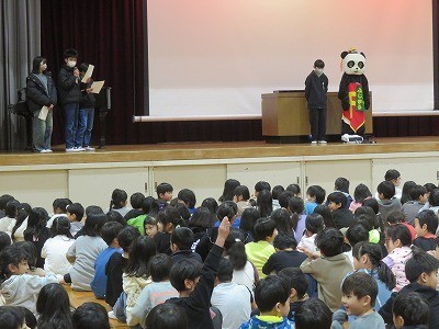 給食委員会からは「残さい0週間」、体育委員会からは「藤江っ子 逃走中」の紹介がありました。