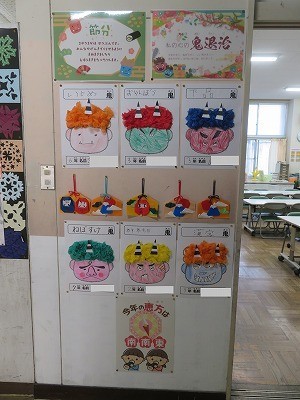 廊下には、節分の作品が飾ってありました。