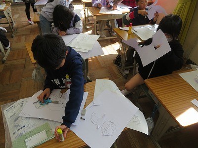 2年生が図工「たのしく うつして」で紙版画に挑戦します。
