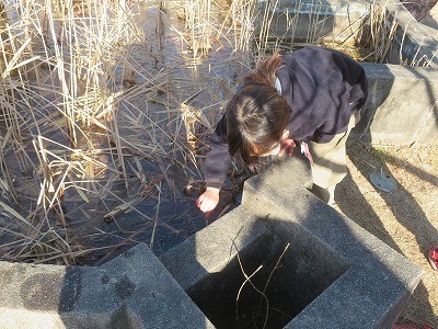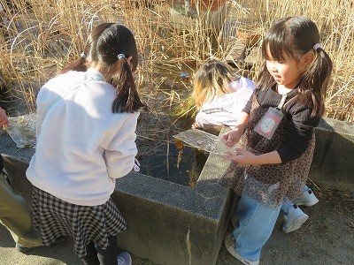 嬉しそうに氷をとろうとする子どもたち。