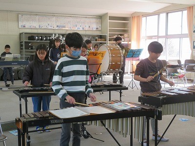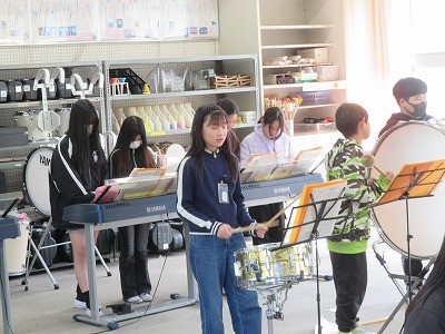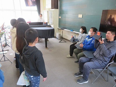 「君をのせて」の合唱と、「ドラえもん」の合奏を披露してくれました。