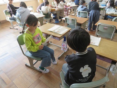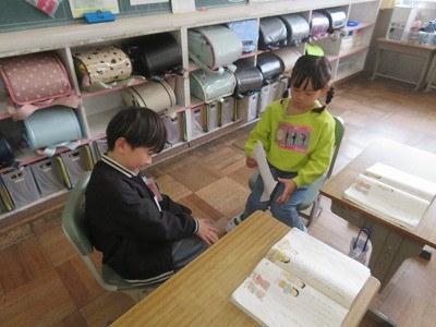 今日は練習で、隣の席の友だちと問題を出し合っていました。