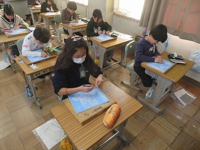 彫刻刀のそれぞれの刃の特徴を生かしながら彫っています。