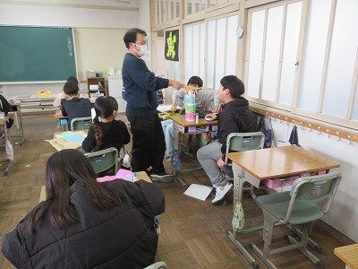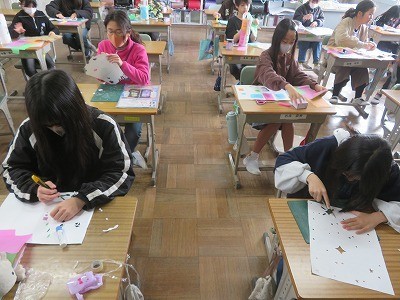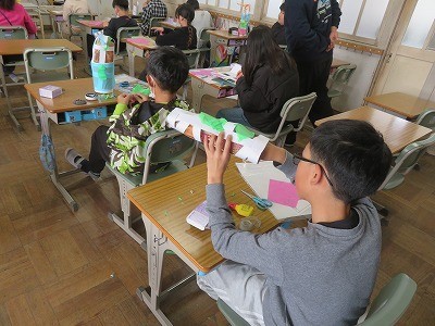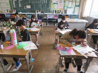 5年生の図工「紙から生まれるすてきな明かり」の様子です。