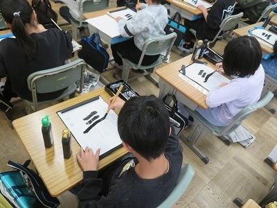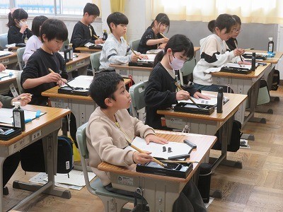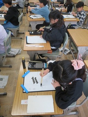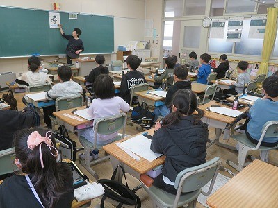 3年生が書写で「春」と書いていました。