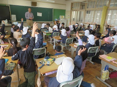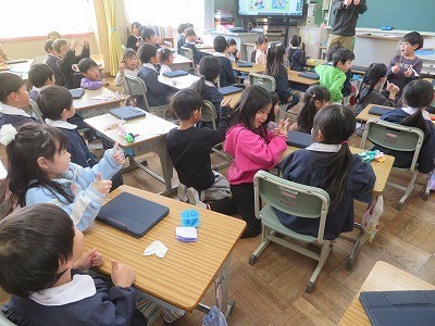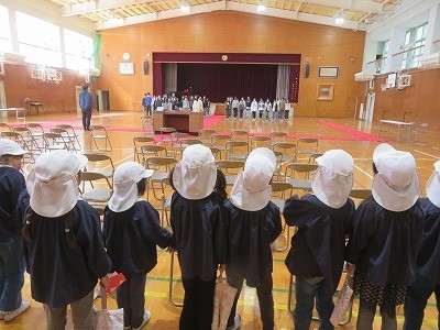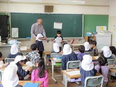 1年生の教室に来年度1年生になる藤江保育園の年長さんが見学にきました。