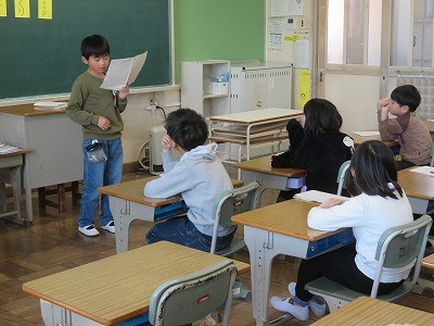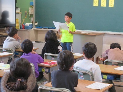 昨日しっかり練習したので、今日はみんな「聞こえる声で」「ゆっくり」「はきはき」の3つのめあてに気をつけて、上手に発表できました。