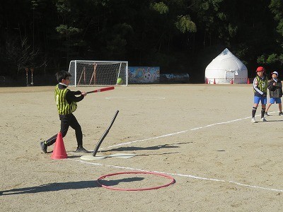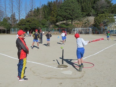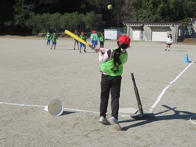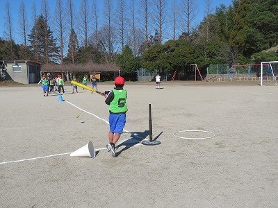 4年生が体育でティーボールに取り組んでいます。
