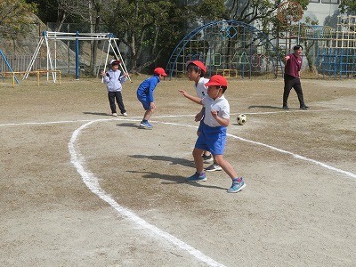 2年生は、タマゴ割りサッカーをしていました。