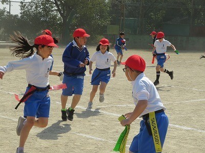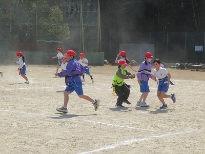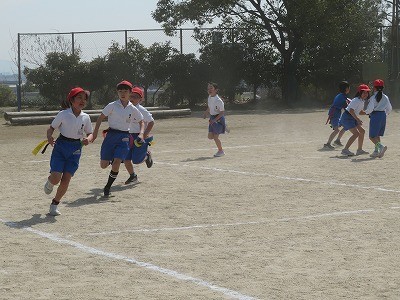 3年生は体育で「タグ鬼」を行っていました。