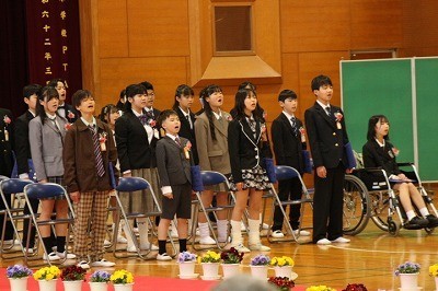 5年生もお世話になった6年生に「おめでとう」と「ありがとう」を力一杯伝えました。