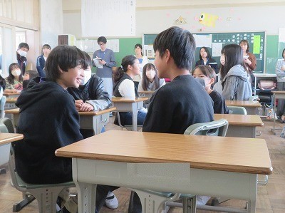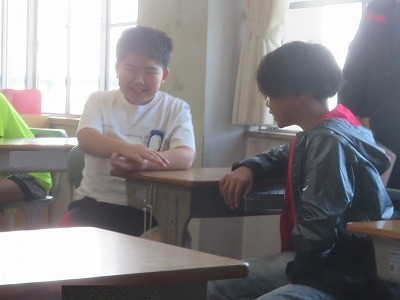 朝の10分間を使って、6年生が「ふじ○(まる)タイム」を行いました。木曜日に本年度1回目を全学年で行うため、職員も研修を兼ねて参観しました。「ふじ○タイム」では、教師と子ども、子ども同士の「関係づくり」を通して「かかわりの力」と自尊感情を高めることを目指しています。今朝は、「しつもんジャンケン」です。約束事やめあてを確認した後、「しつもんジャンケン」「フリートーク」「振り返り」の順に、お手本を見せてくれました。にこにこ笑顔で活動する姿が見られました。