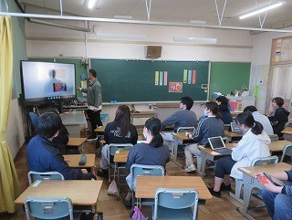生成AIの利活用ガイドラインと、電子黒板及びデジタル教科書の使用方法について、授業後に研修を行いました。講師は、ICT支援員さんです。今後も授業で電子黒板を活用していきます。