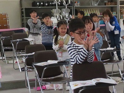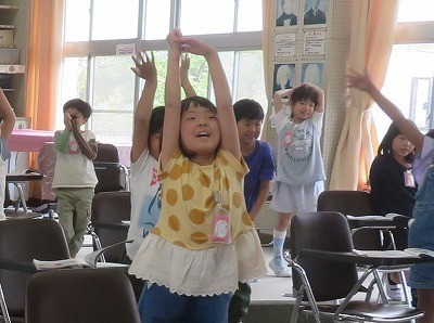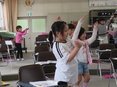 2年生は、音楽「強さとはやさ」の学習をしています。「小さなはたけ」の曲で、お花の様子を声や身振りで表現しています。曲の最後の「花が咲きました ガバッ」の歌詞に合わせて大きくジャンプをしました。