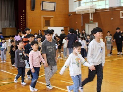 1年生と2から6年生の交流を図ることを目的に、「1年生をむかえる会」を開きました。ゲームや藤江小学校に関するクイズを楽しんだ後は、みんなで「ふじまる音頭」を踊りました。本年度の児童会スローガンは、「みんなでつくろう あかるい学校」です。準備や進行をがんばってくれた執行委員さんのおかげで、藤江っ子みんなで楽しく明るい時間を過ごすことができました。