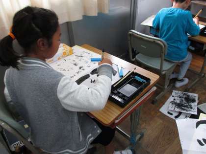 今日の3年2組の3時間目は書写の時間で、「にじ」という文字を書いていました。何枚か書いたあと、担当の先生に清書として提出するものを選んでもらっていました。