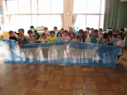 今日の1年1組の5時間目は国語の時間で、藤江っ子まつりで発表するくじらぐもの音読や歌の練習をしていました。