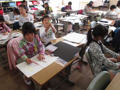 今日の2年2組の5時間目は図工の時間で、「ひかりのプレゼント」という教材を使った授業でした。この教材は、ステンドグラスのように光を透かして楽しむ作品作りができ、光を通してできる影の美しさを楽しむことができます。
