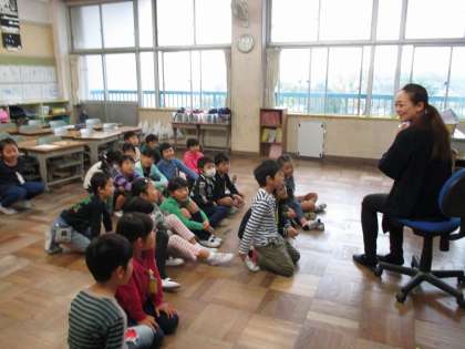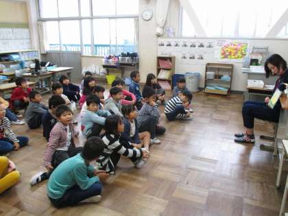 今日の朝の読書タイムの時、2・3・4年生を対象に、読み聞かせボランティア「こもれび」の方や保護者ボランティアの方に読み聞かせをしていただきました。下の写真は2年生の読み聞かせの様子です。