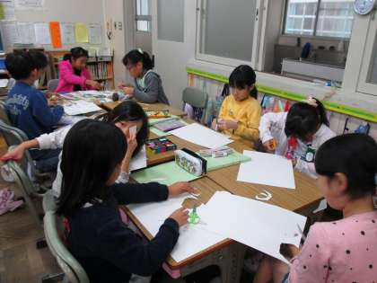 今日の3年生の3時間目は藤江っ子まつりの準備をしていました。それぞれの担当コーナーごとに活動していました。